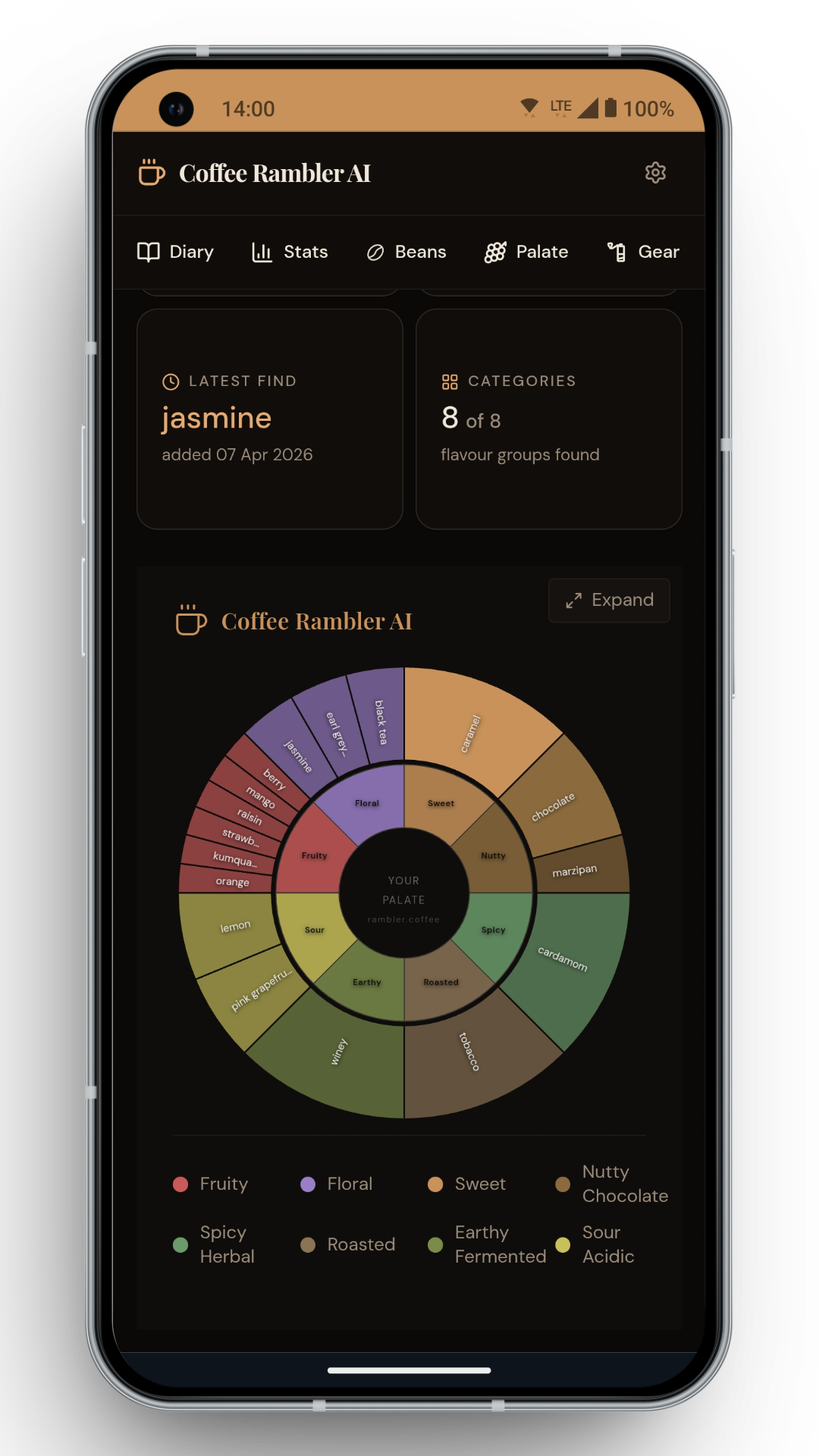 Track every brew, spot your patterns and get personalised advice based on your actual taste preferences.